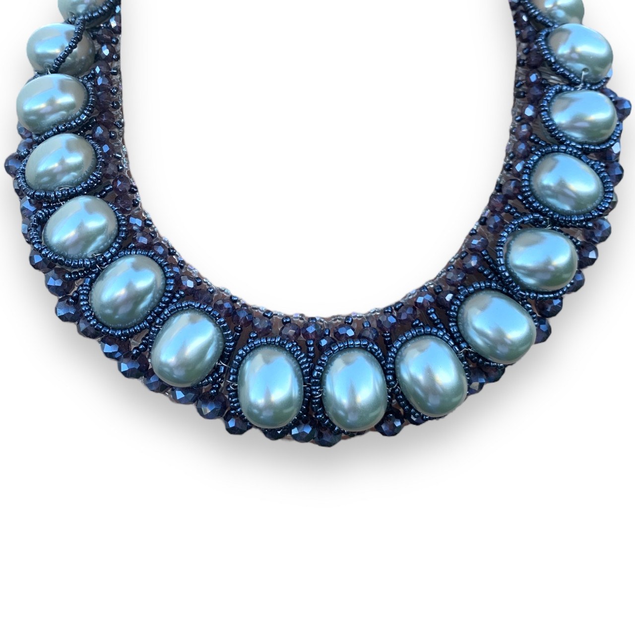 Handmade Choker 18" Freshwater Grey Baroque Pearls Strapless Bib Necklace