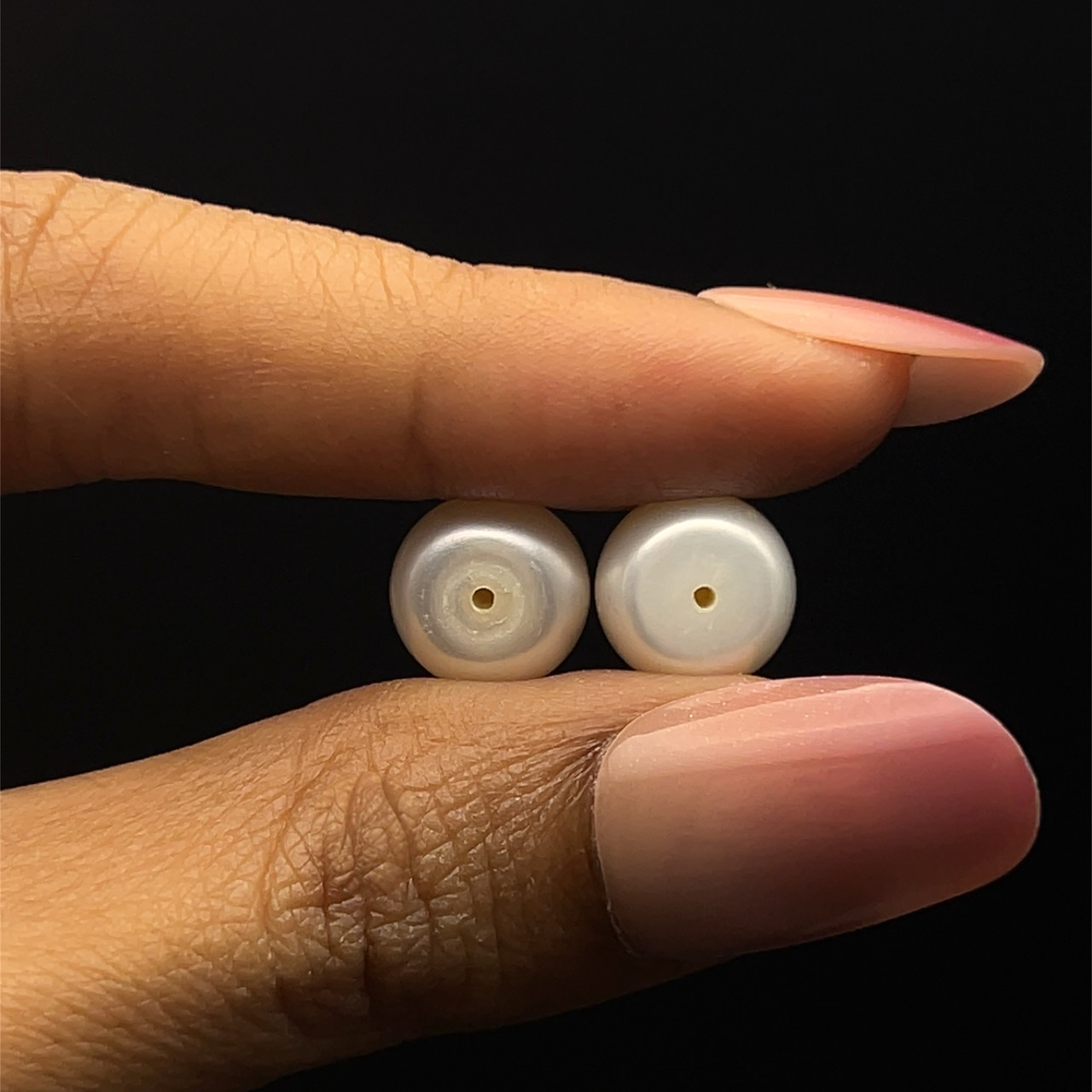 Freshwater Pearl 10.10mm Button/Rondelle Plain Smooth 2 Piece 10.95 Carats VVS2 Clarity White Color Drilled Pearly Luster Jewelry Making June Birthstone