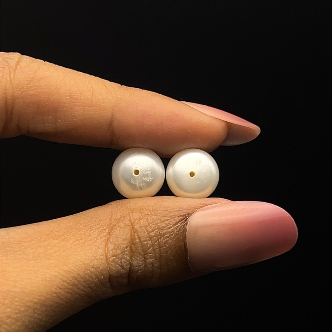 Freshwater Pearl 10.10mm Button/Rondelle Plain Smooth 2 Piece 11.21 Carats VVS2 Clarity White Color Drilled Pearly Luster Jewelry Making June Birthstone