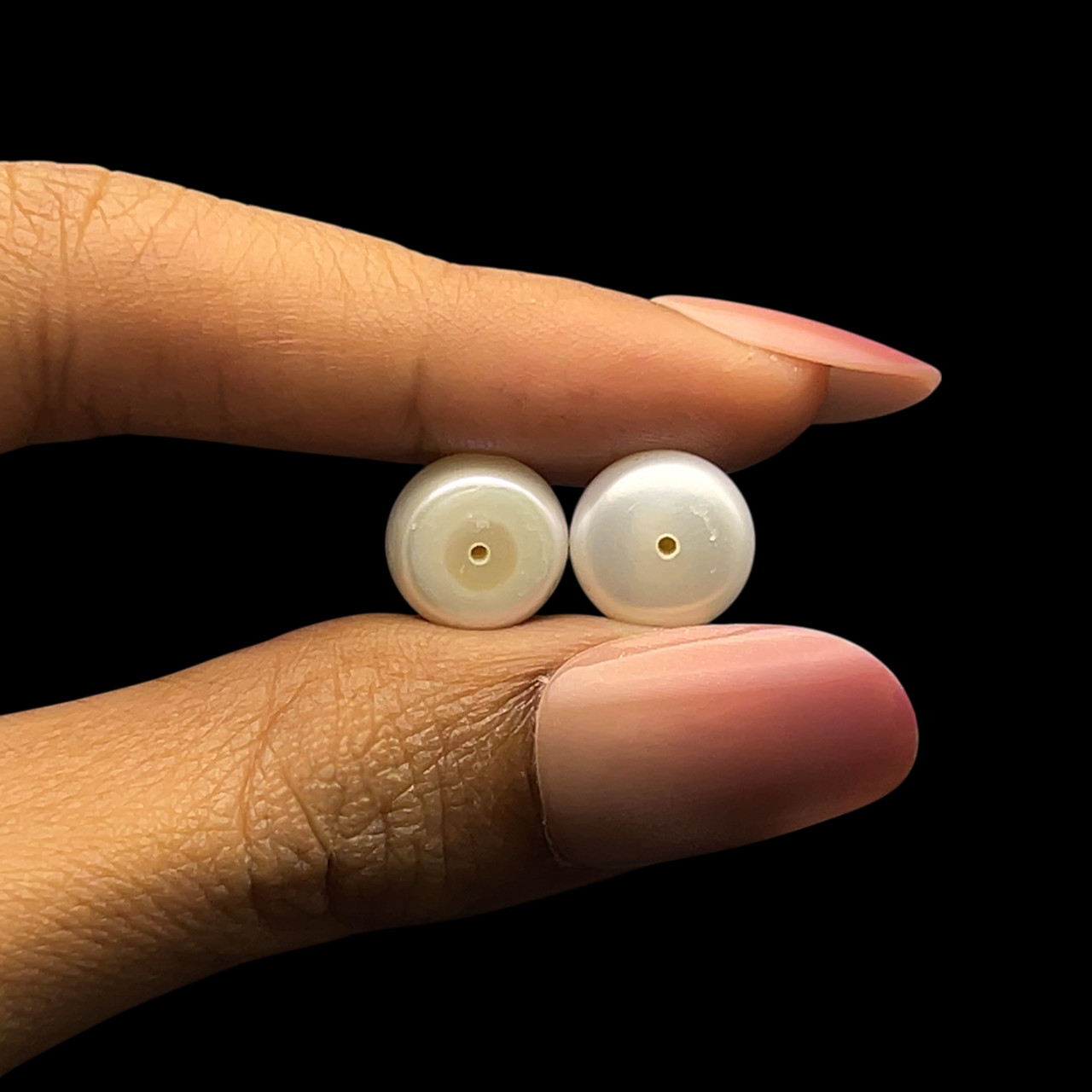Freshwater Pearl 10.20mm Button/Rondelle Plain Smooth 2 Piece 11.61 Carats VVS2 Clarity White Color Drilled Pearly Luster Jewelry Making June Birthstone