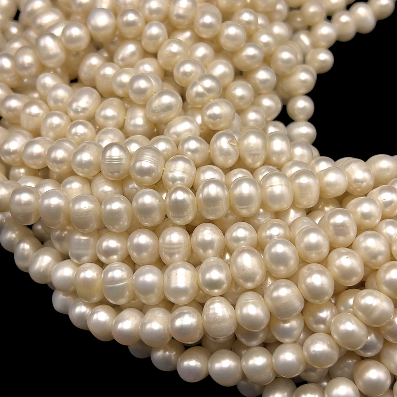 Radiating elegance and rich natural beauty, this freshwater pearl strand is a timeless choice for jewelry making. Its classic appeal complements any outfit, from everyday wear to special occasions. Beyond their beauty, pearls are known to promote stress relief, emotional balance, spiritual growth, and protection. Versatile and meaningful, these pearls are perfect for crafting necklaces, bracelets, earrings, or thoughtful gifts that carry both style and intention.