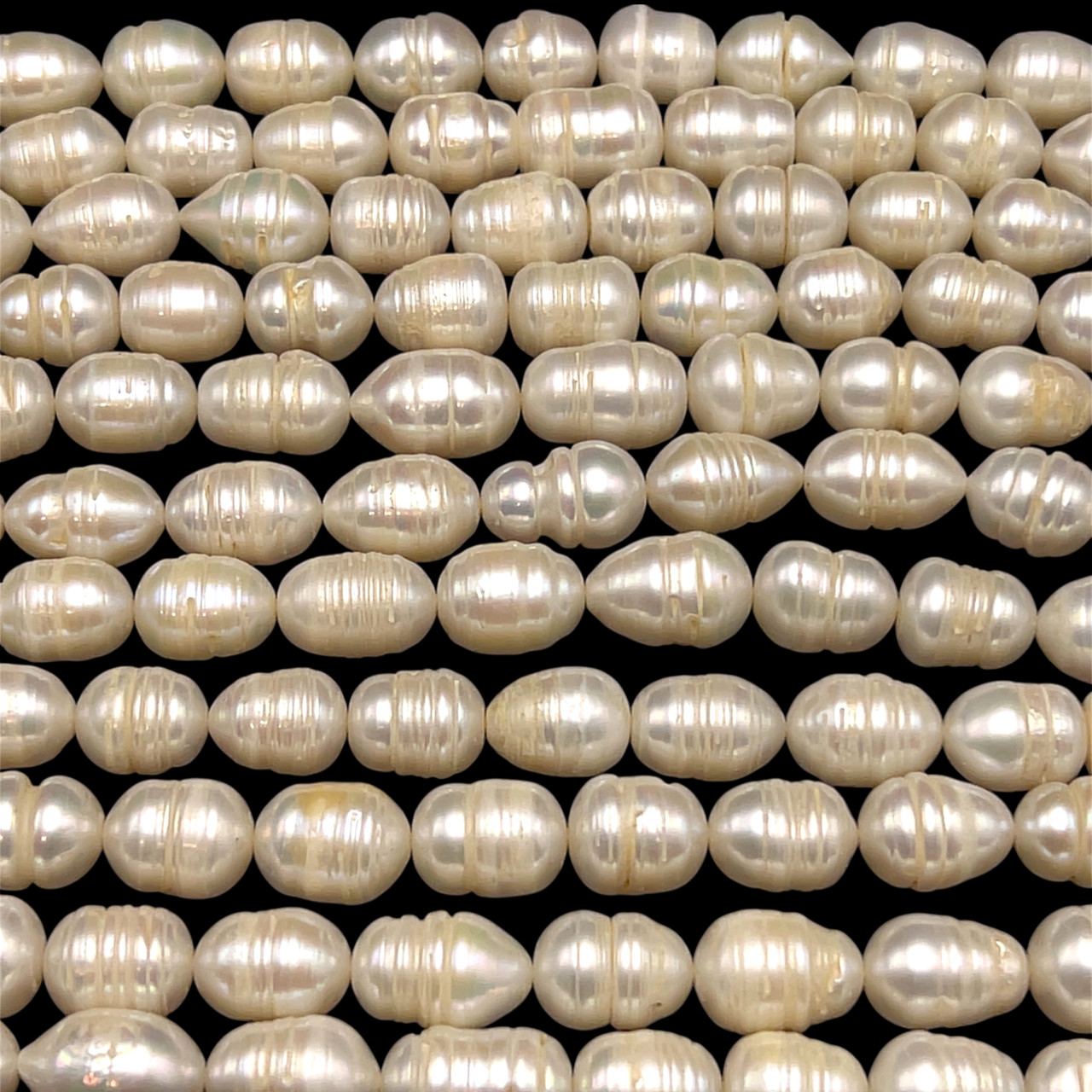 Fresh Water Pearl 12x10 mm Ringed Smooth Cut Bridal White Color 15.5 inch Strand