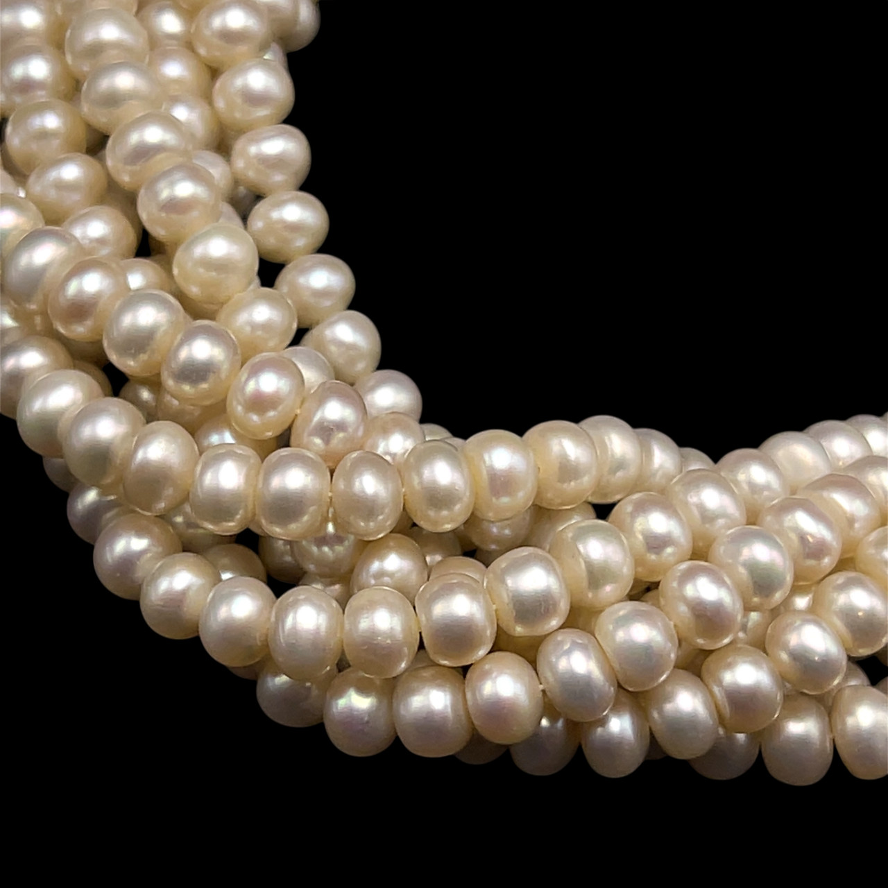 Radiating elegance and rich natural beauty, this freshwater pearl strand is a timeless choice for jewelry making. Its classic appeal complements any outfit, from everyday wear to special occasions. Beyond their beauty, pearls are known to promote stress relief, emotional balance, spiritual growth, and protection. Versatile and meaningful, these pearls are perfect for crafting necklaces, bracelets, earrings, or thoughtful gifts that carry both style and intention.