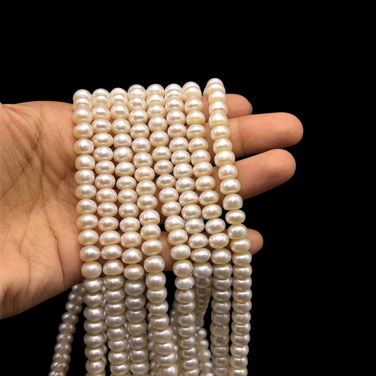 Fresh Water Pearl 7.50 mm Button Smooth Cut White Color 15.8 inch Strand