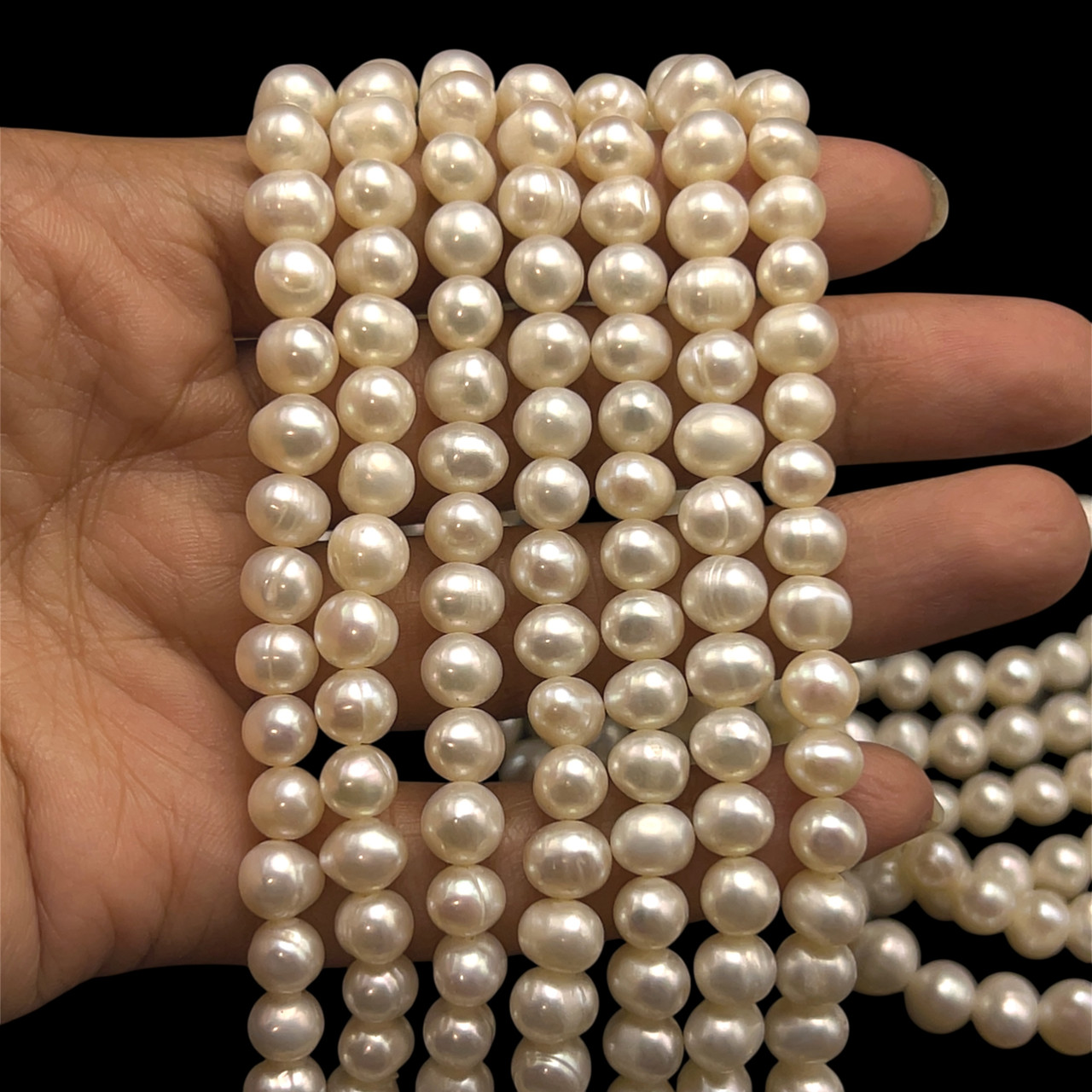 Radiating elegance and rich natural beauty, this freshwater pearl strand is a timeless choice for jewelry making. Its classic appeal complements any outfit, from everyday wear to special occasions. Beyond their beauty, pearls are known to promote stress relief, emotional balance, spiritual growth, and protection. Versatile and meaningful, these pearls are perfect for crafting necklaces, bracelets, earrings, or thoughtful gifts that carry both style and intention.
