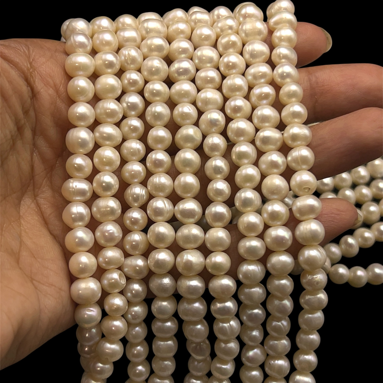 Radiating elegance and rich natural beauty, this freshwater pearl strand is a timeless choice for jewelry making. Its classic appeal complements any outfit, from everyday wear to special occasions. Beyond their beauty, pearls are known to promote stress relief, emotional balance, spiritual growth, and protection. Versatile and meaningful, these pearls are perfect for crafting necklaces, bracelets, earrings, or thoughtful gifts that carry both style and intention.