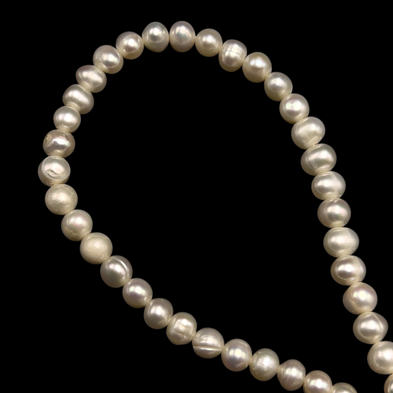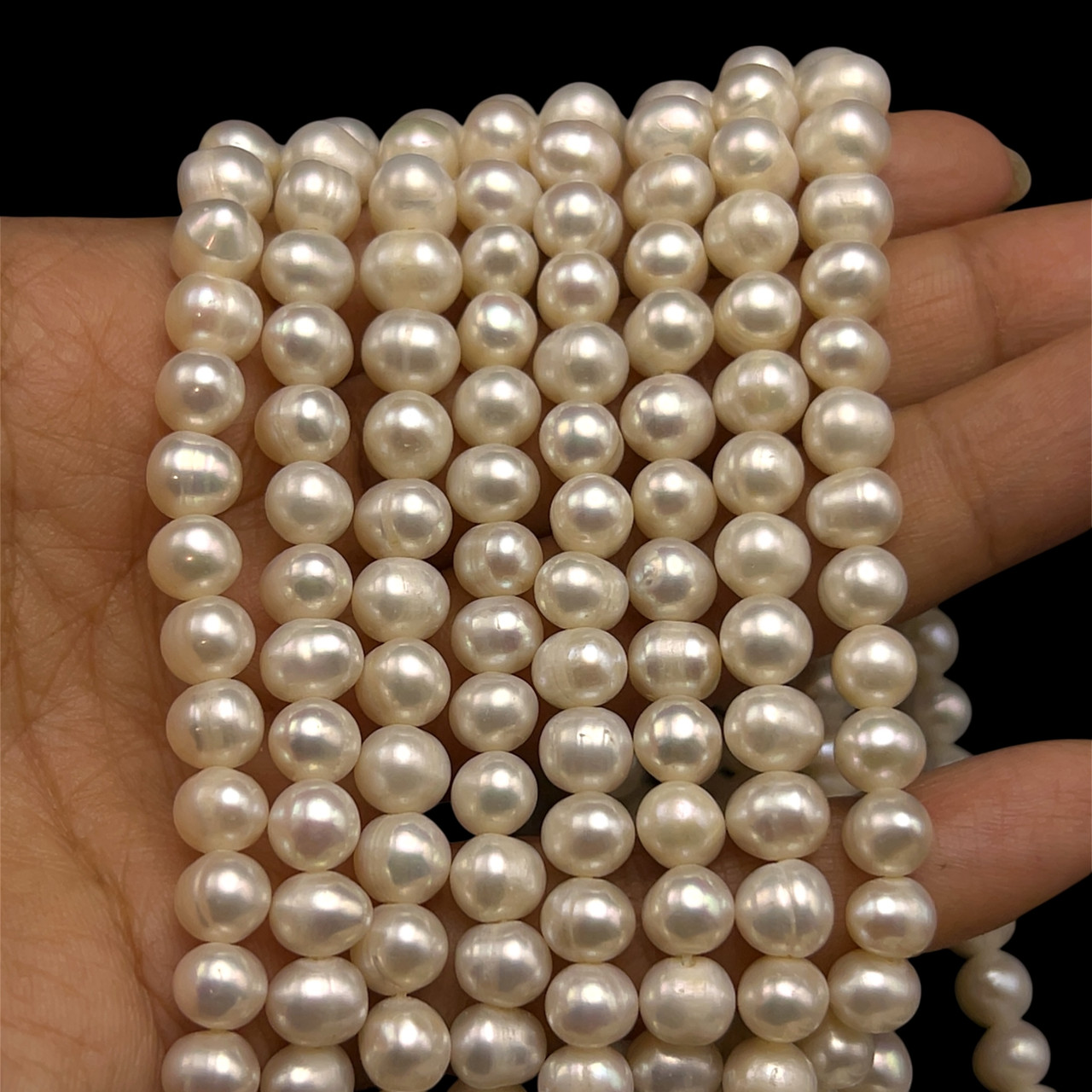 Radiating elegance and rich natural beauty, this freshwater pearl strand is a timeless choice for jewelry making. Its classic appeal complements any outfit, from everyday wear to special occasions. Beyond their beauty, pearls are known to promote stress relief, emotional balance, spiritual growth, and protection. Versatile and meaningful, these pearls are perfect for crafting necklaces, bracelets, earrings, or thoughtful gifts that carry both style and intention.
