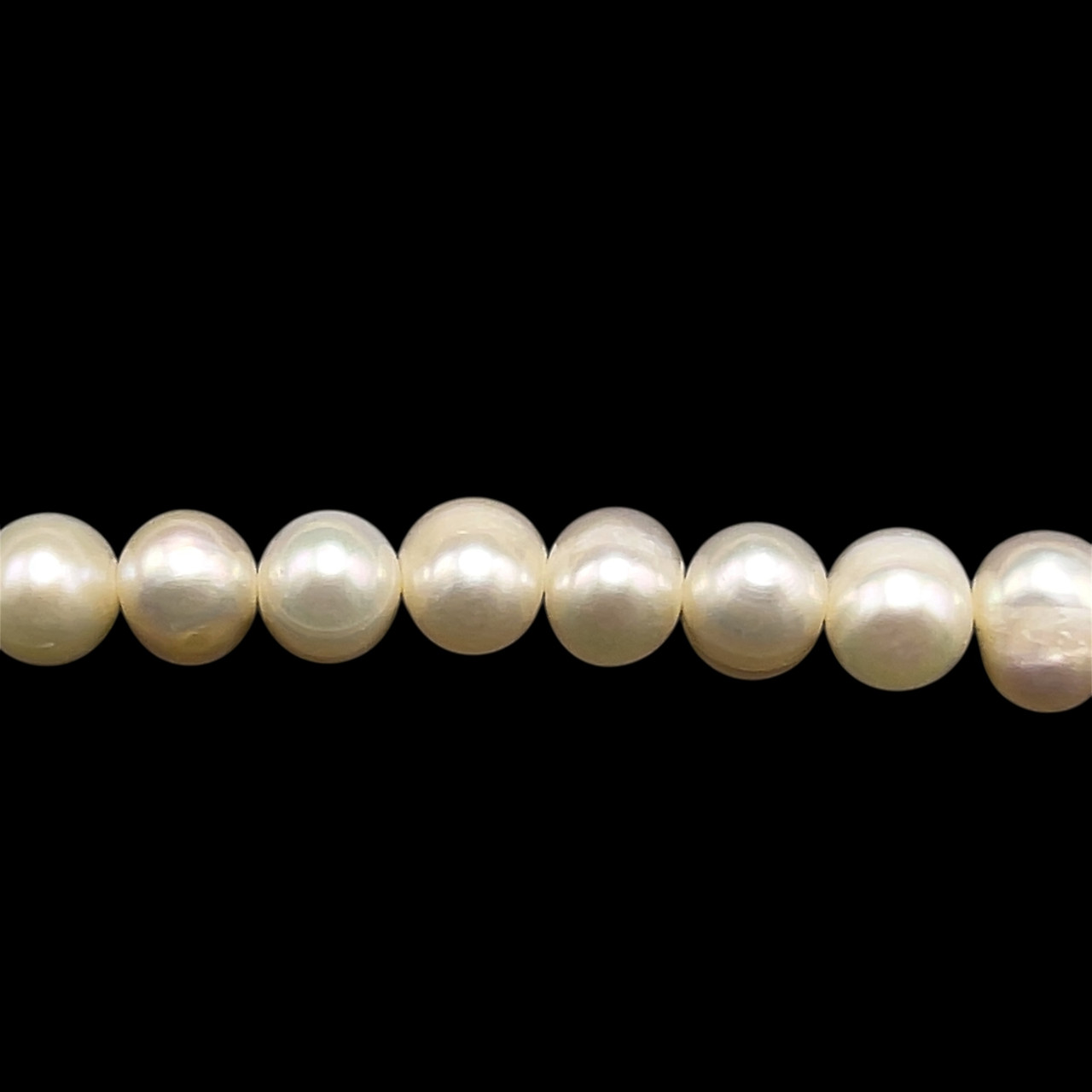 Radiating elegance and rich natural beauty, this freshwater pearl strand is a timeless choice for jewelry making. Its classic appeal complements any outfit, from everyday wear to special occasions. Beyond their beauty, pearls are known to promote stress relief, emotional balance, spiritual growth, and protection. Versatile and meaningful, these pearls are perfect for crafting necklaces, bracelets, earrings, or thoughtful gifts that carry both style and intention.