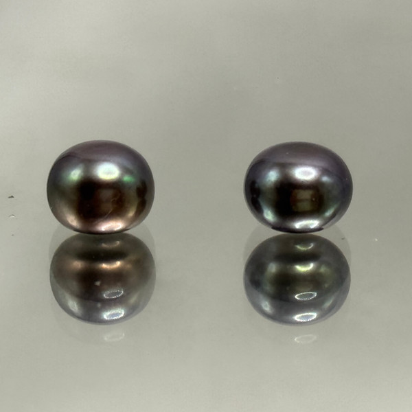 Freshwater Pearl 9.40mm Button/Rondelle Plain Smooth 2 Piece 9.83 Carats VVS2 Clarity Grey Color Drilled Pearly Luster Jewelry Making June Birthstone