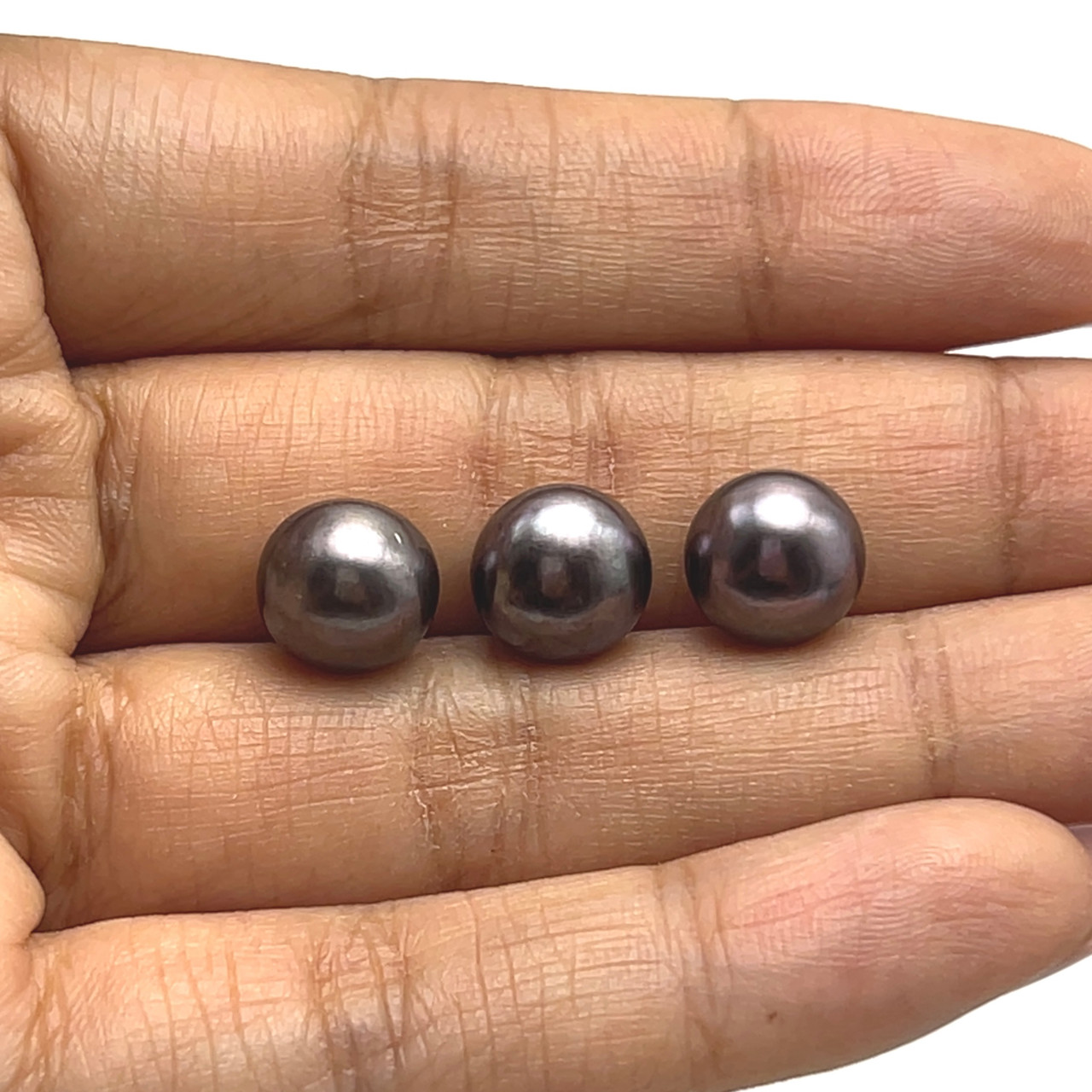 Freshwater Pearl 9.40mm Button/Rondelle Plain Smooth 3 Piece 14.45 Carats VVS2 Clarity Eggplant Color Drilled Pearly Luster Jewelry Making June Birthstone