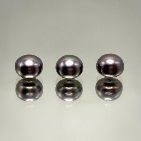 Freshwater Pearl 9.40mm Button/Rondelle Plain Smooth 3 Piece 14.45 Carats VVS2 Clarity Eggplant Color Drilled Pearly Luster Jewelry Making June Birthstone