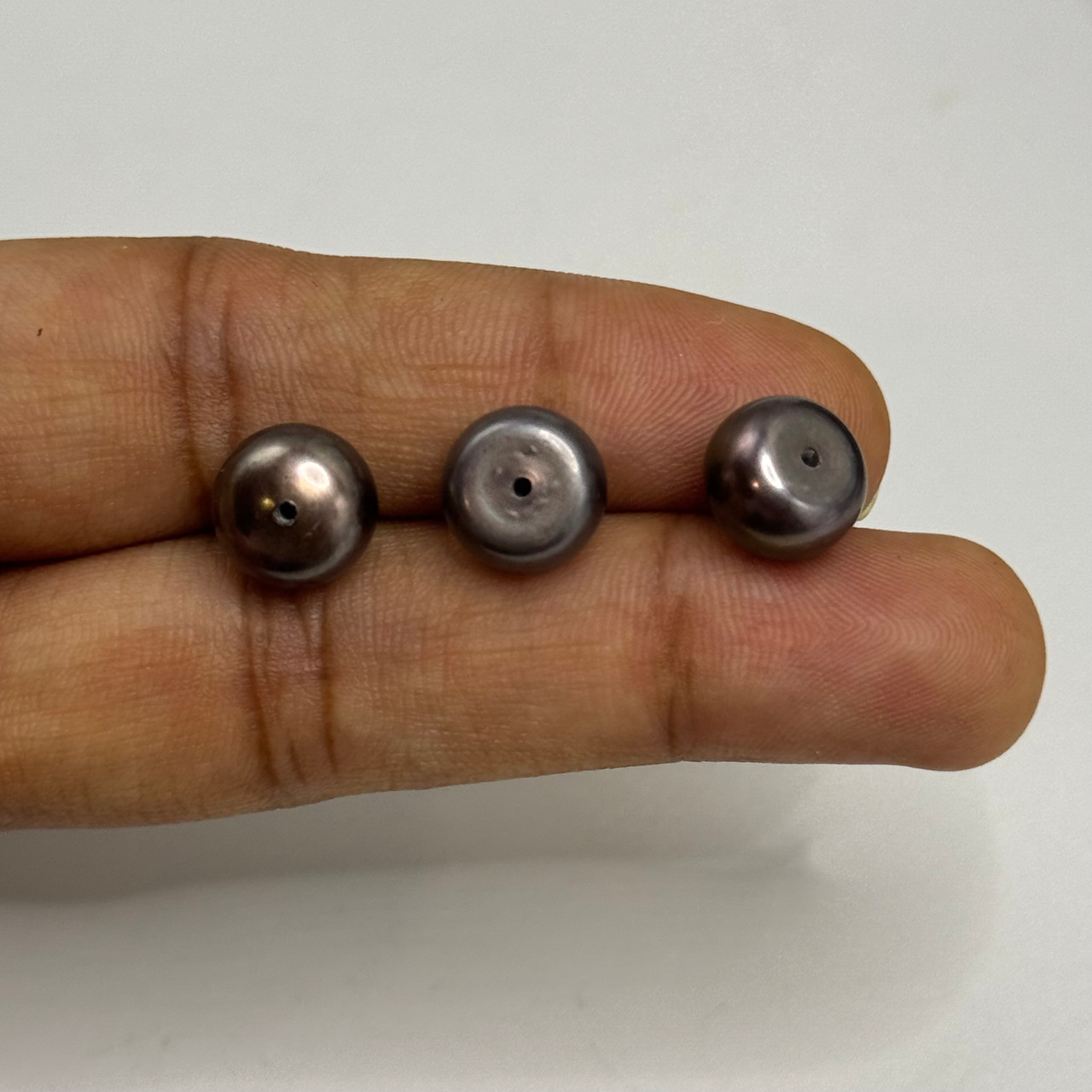 Freshwater Pearl 9.40mm Button/Rondelle Plain Smooth 3 Piece 14.89 Carats VVS2 Clarity Grey Color Drilled Pearly Luster Jewelry Making June Birthstone