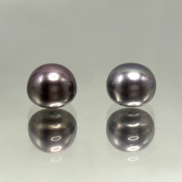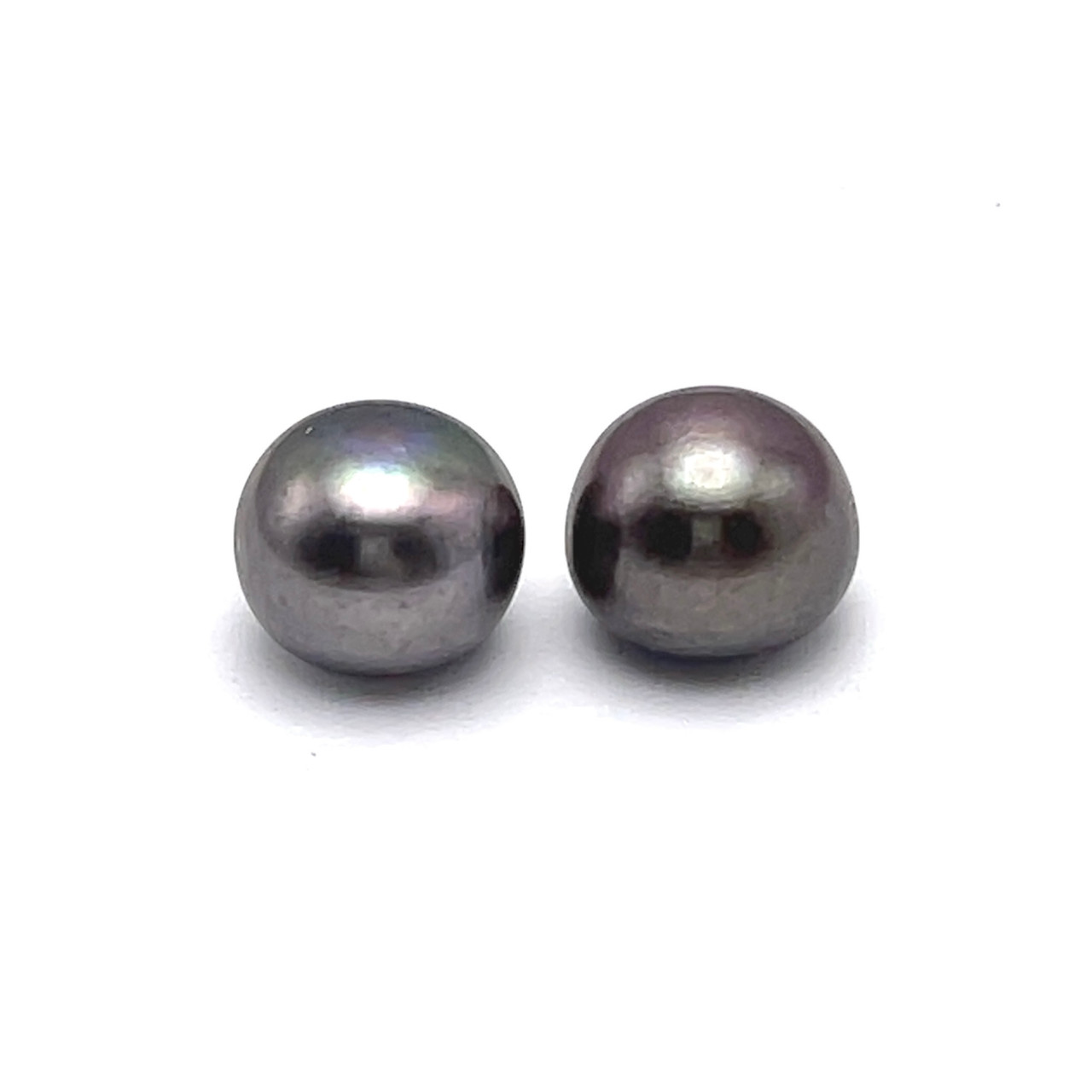 Freshwater Pearl 9.50mm Button/Rondelle Plain Smooth 2 Piece 10.60 Carats VVS2 Clarity Grey Color Drilled Pearly Luster Jewelry Making June Birthstone