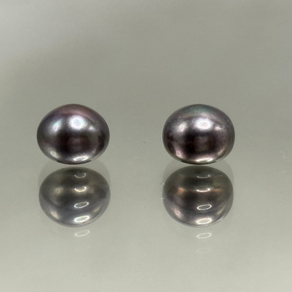 Freshwater Pearl 9.50mm Button/Rondelle Plain Smooth 2 Piece 9.76 Carats VVS2 Clarity Grey Color Drilled Pearly Luster Jewelry Making June Birthstone