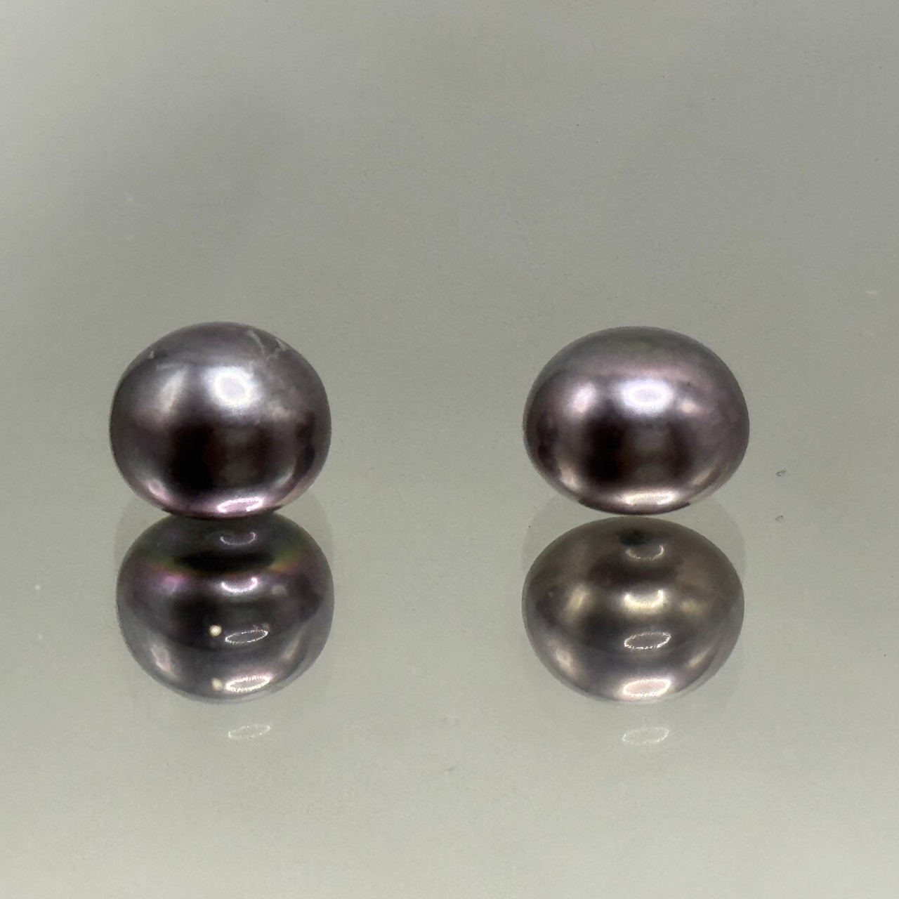 Freshwater Pearl 9.50mm Button/Rondelle Plain Smooth 2 Piece 9.79 Carats VVS2 Clarity Grey Color Drilled Pearly Luster Jewelry Making June Birthstone