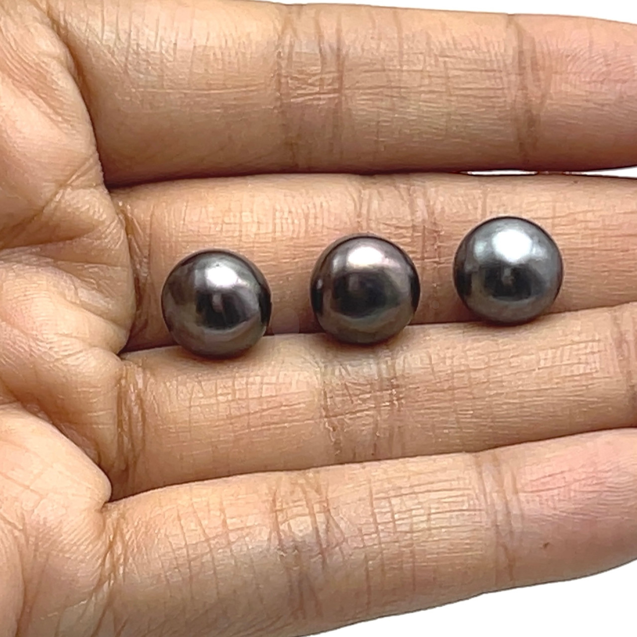 Freshwater Pearl 9.50mm Button/Rondelle Plain Smooth 3 Piece 16 Carats VVS2 Clarity Eggplant Color Drilled Pearly Luster Jewelry Making June Birthstone