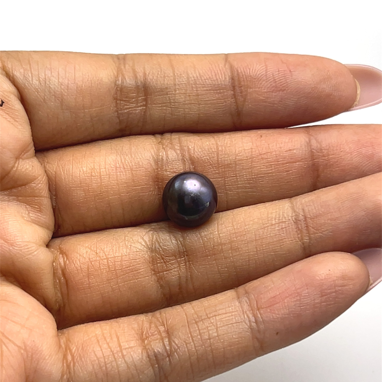 Freshwater Pearl 9.60mm Button/Rondelle Plain Smooth 1 Piece 5.19 Carats VVS2 Clarity Black Color Drilled Pearly Luster Jewelry Making June Birthstone