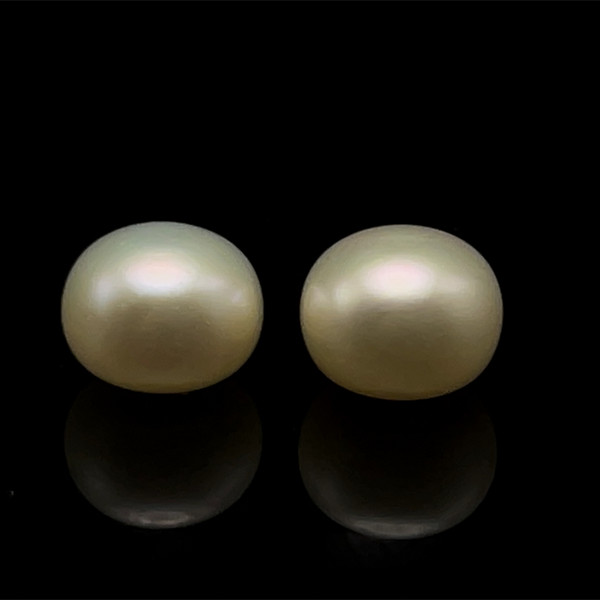 Freshwater Pearl 9.70mm Button/Rondelle Plain Smooth 2 Piece 10.92 Carats VVS2 Clarity White Color Drilled Pearly Luster Jewelry Making June Birthstone