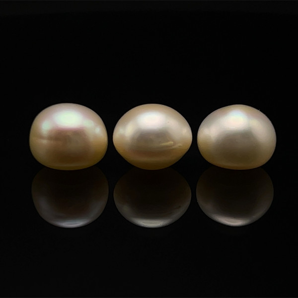 Freshwater Pearl 9.80mm Button/Rondelle Plain Smooth 3 Piece 16.41 Carats VVS2 Clarity Cream Color Drilled Pearly Luster Jewelry Making June Birthstone