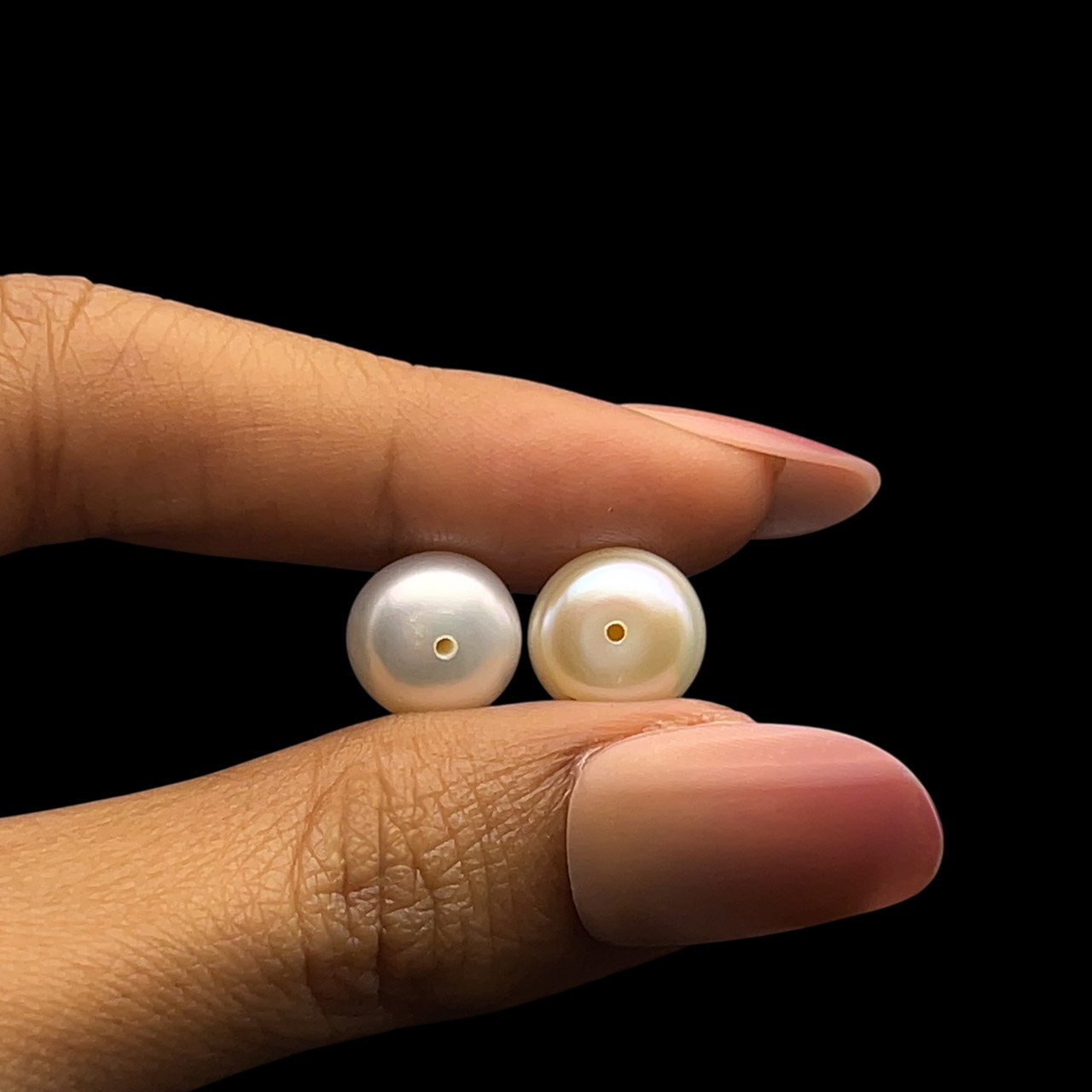 Freshwater Pearl Button/Rondelle 10mm Plain Smooth 2 Piece 11.33 Carats VVS2 Clarity Cream Color Drilled Pearly Luster Jewelry Making June Birthstone