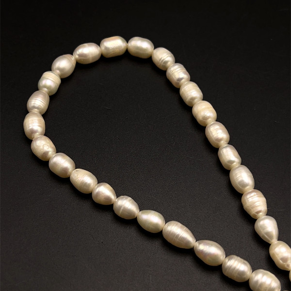 Freshwater Pearl Strand | 9x7mm Ivory Color Drop Oval | 42 Pcs 147.83 Carats | 15.5 Inch | Organic Pearl Strands Jewelry Making
