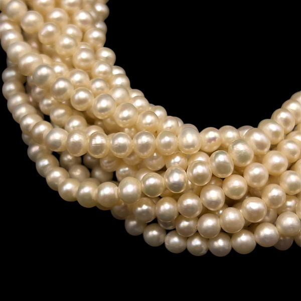 Fresh Water Pearl 6.00 mm Round Smooth Cut Cream Color 15.7 inch Strand