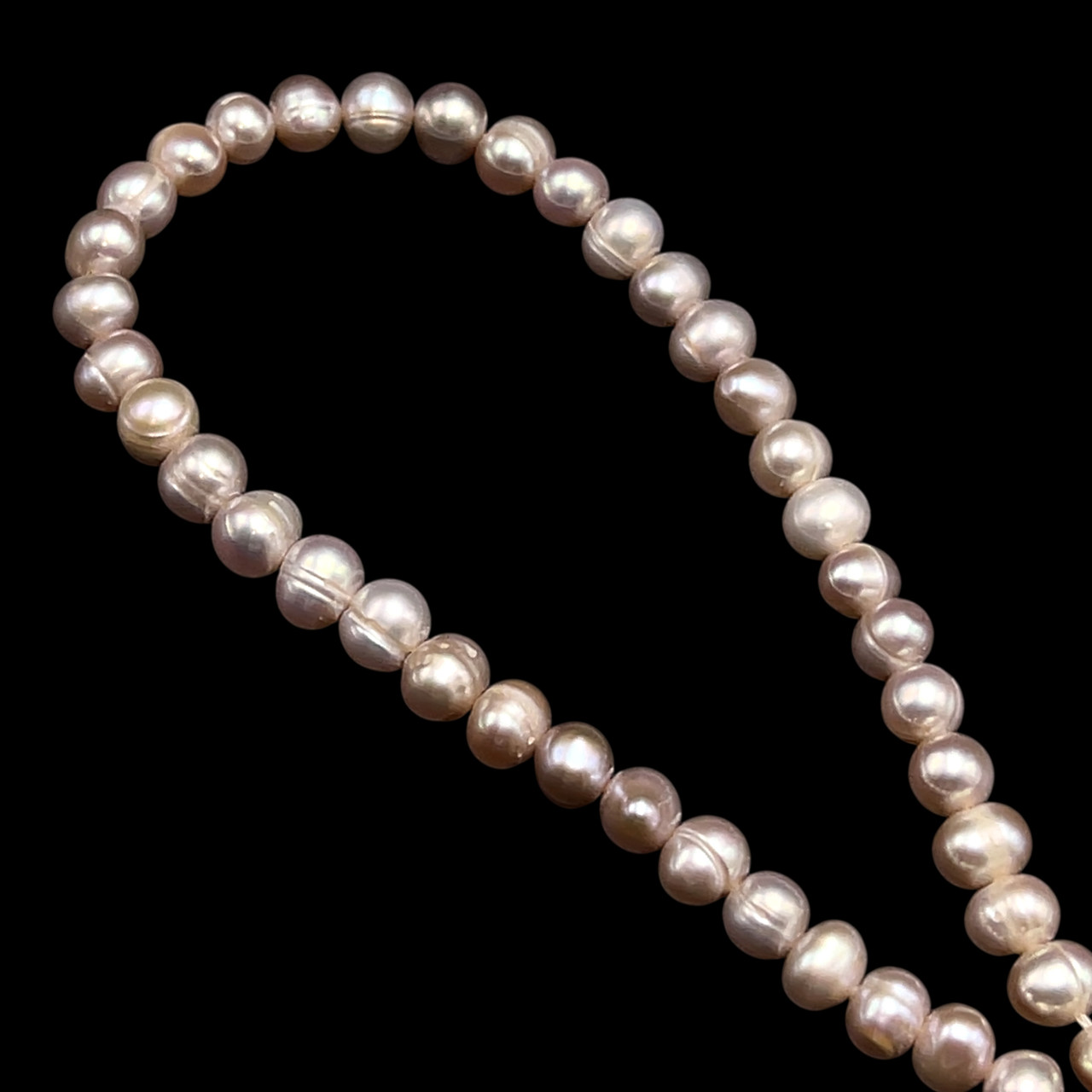 Radiating elegance and rich natural beauty, this freshwater pearl strand is a timeless choice for jewelry making. Its classic appeal complements any outfit, from everyday wear to special occasions. Beyond their beauty, pearls are known to promote stress relief, emotional balance, spiritual growth, and protection. Versatile and meaningful, these pearls are perfect for crafting necklaces, bracelets, earrings, or thoughtful gifts that carry both style and intention.