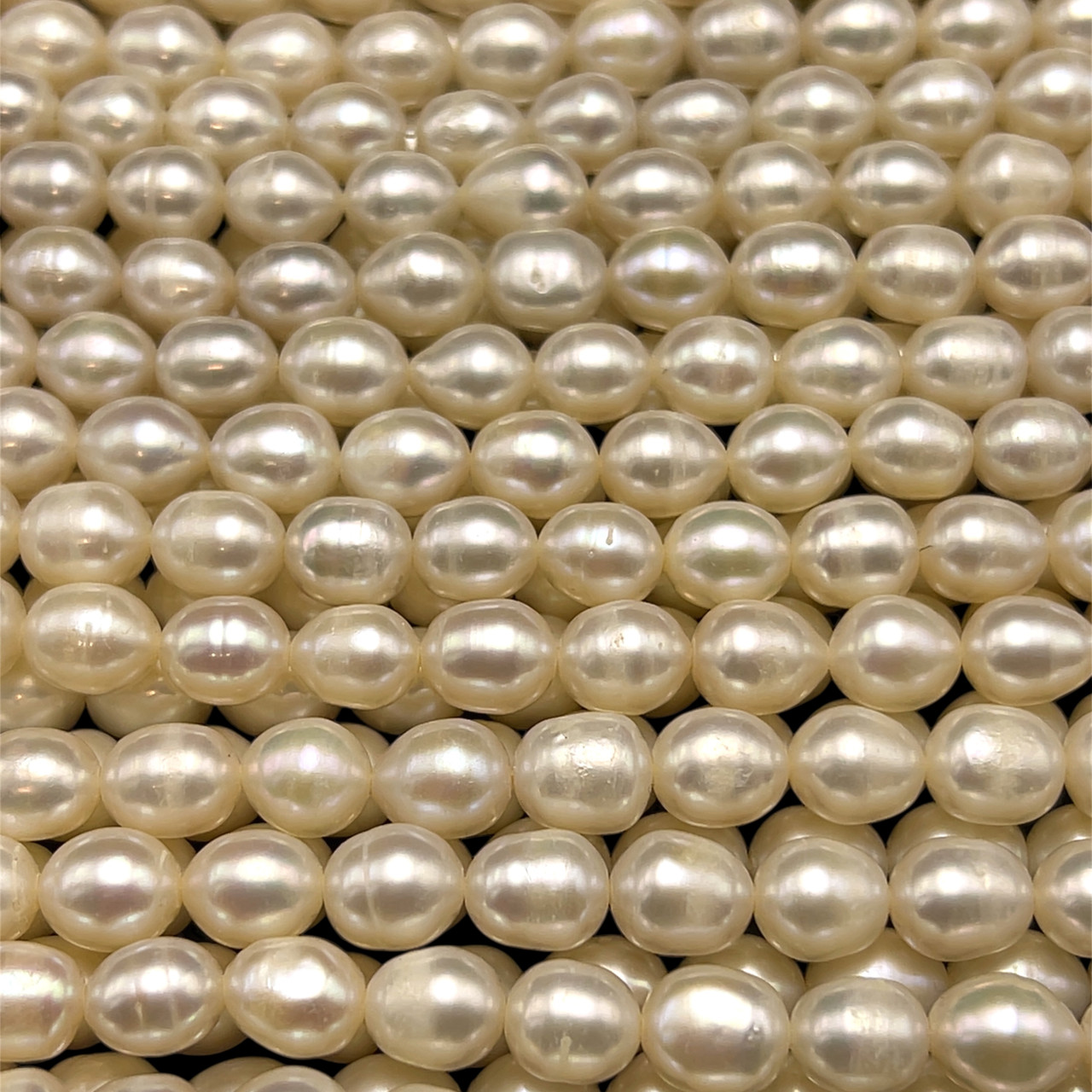 Freshwater Pearl Strand 9x7mm Drop & Button Smooth 47 PCS Ivory Color 15 inch Pearl Birthstone