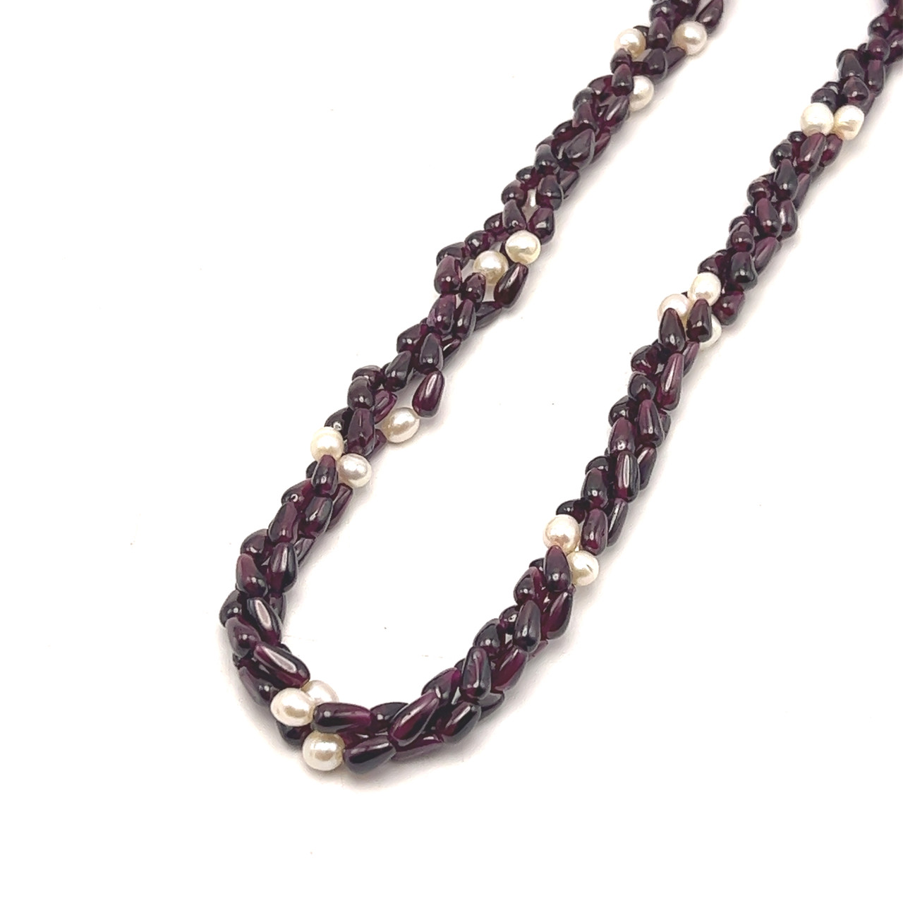 Each gemstone is carefully selected and polished to highlight its natural beauty, while the thoughtful arrangement ensures a comfortable fit and elegant flow along the neckline. Garnet is traditionally associated with passion, strength, and grounding energy, while pearls symbolize purity and sophistication. This necklace is perfect for special occasions, elegant evenings, or as a standout piece in a curated gemstone jewelry collection.