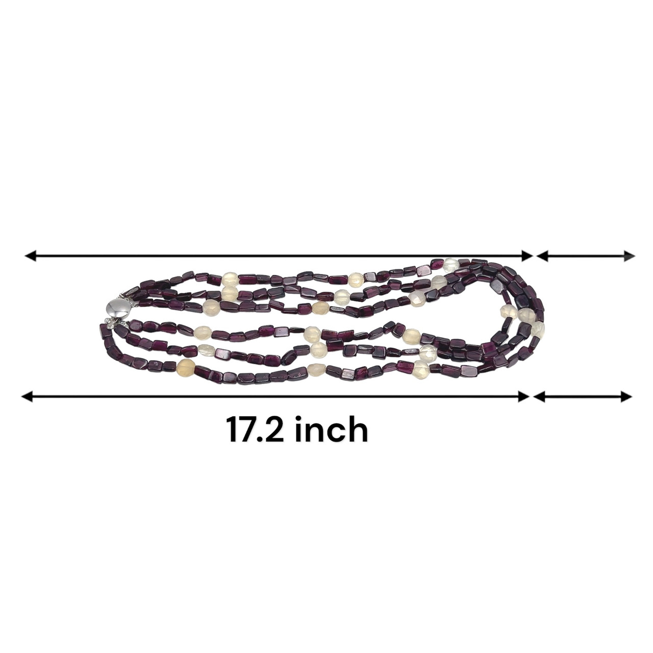 Natural Garnet Smooth Tube & Chalcedony Round Handmade Gemstone Beaded 17.2 Inch Layered Necklace Jewelry