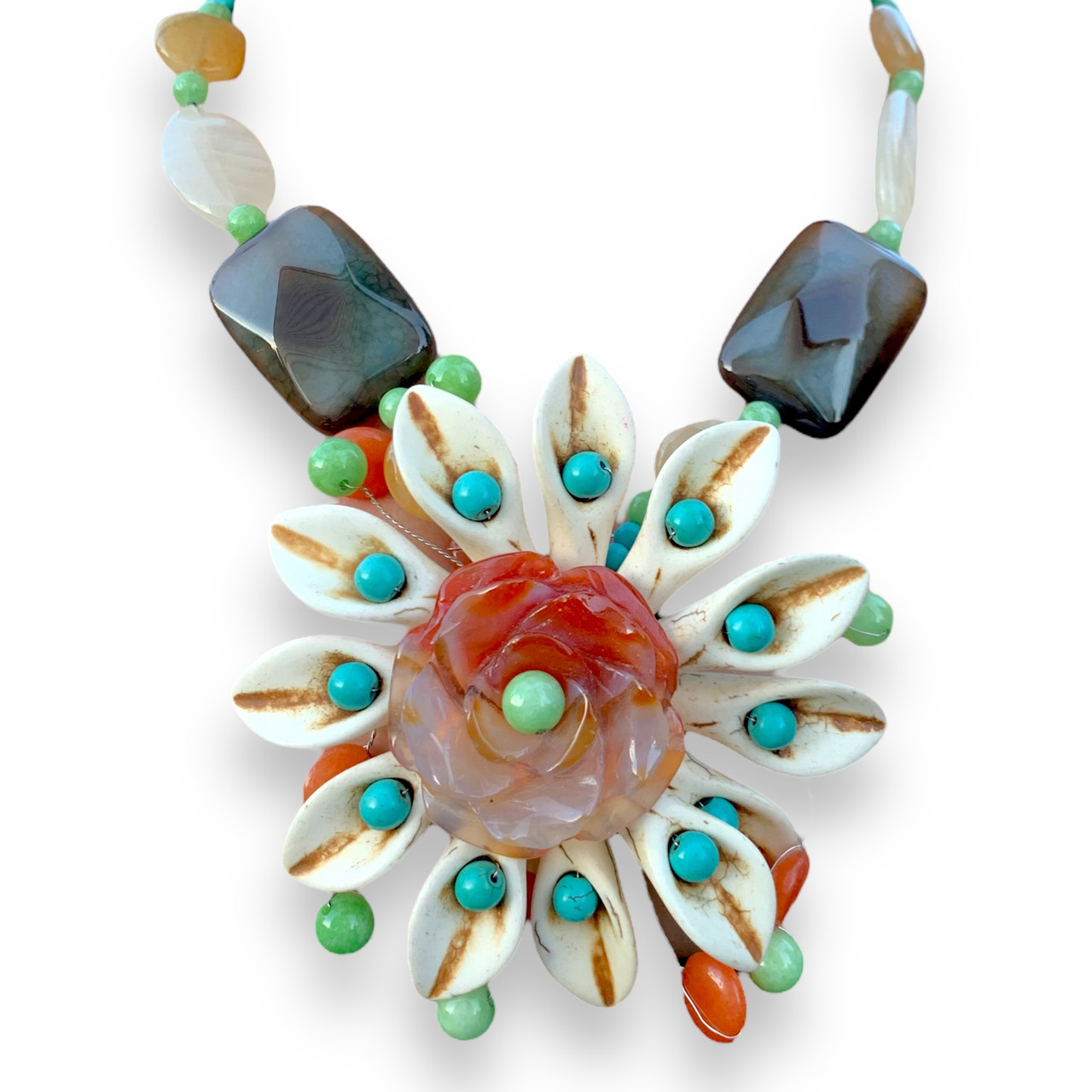 Handmade Tropical Necklace 18" Cowrie Shell Turquoise Agate Gemstone Choker