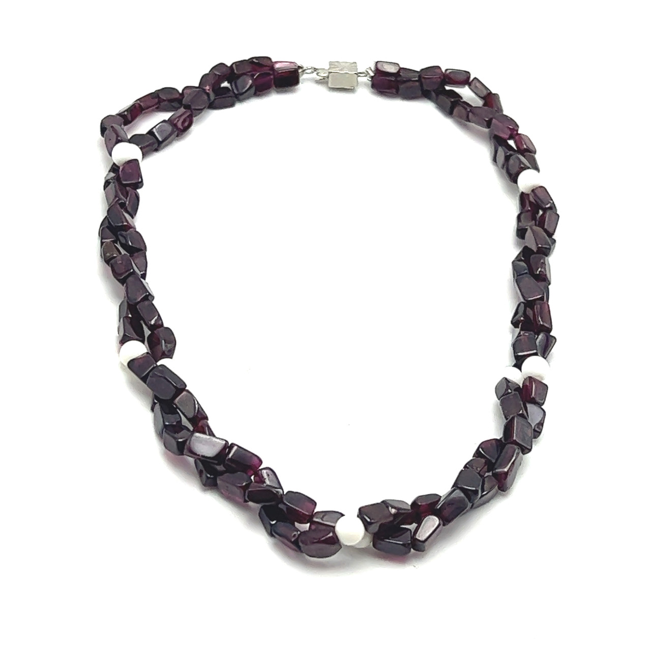 Each gemstone is carefully selected and polished to highlight its natural character, while the thoughtful arrangement ensures a graceful drape and comfortable wear. Garnet is traditionally associated with passion, strength, and grounding energy, while agate is admired for its calming and stabilizing qualities. This necklace is perfect for elegant everyday wear or special occasions, offering timeless style through authentic handmade artistry.