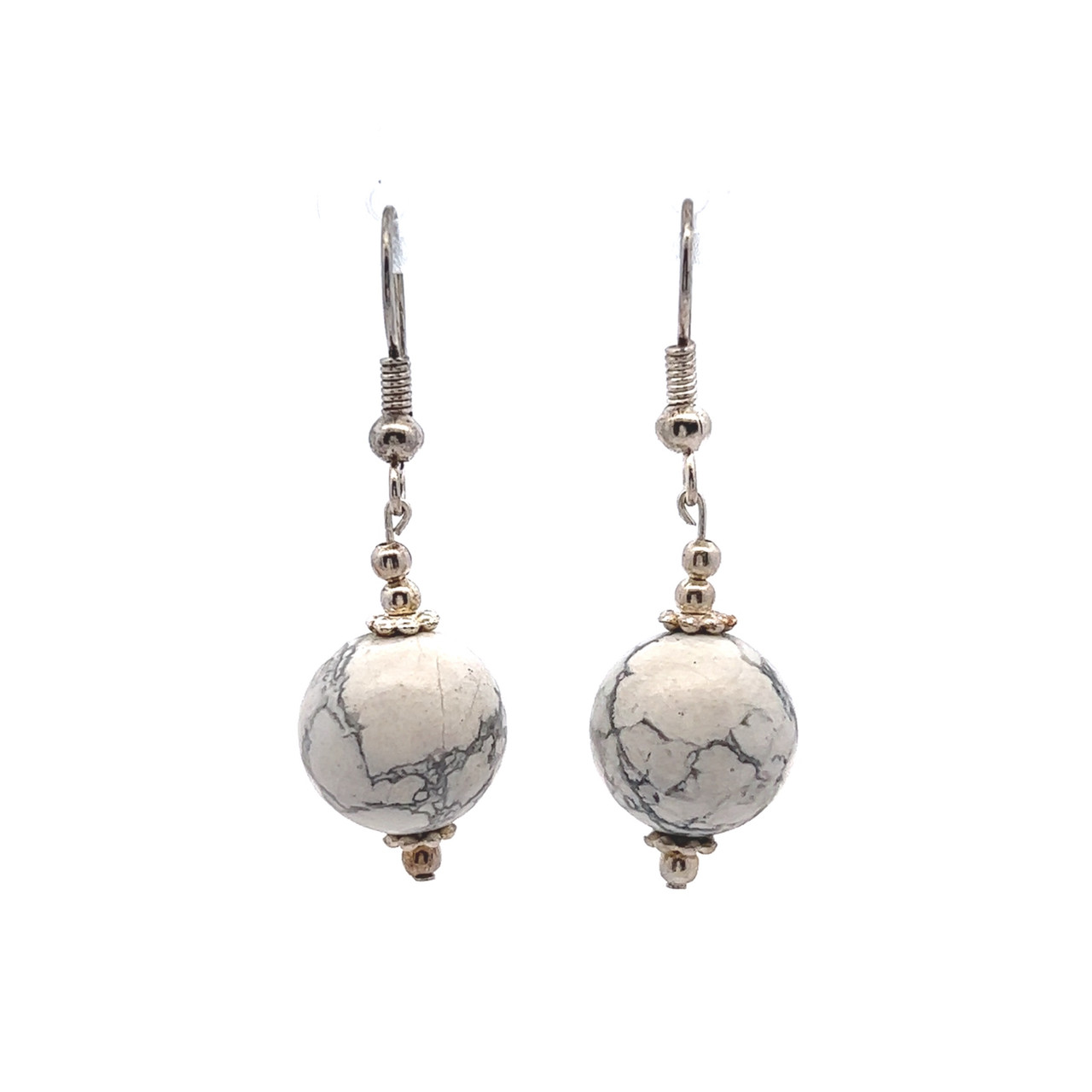 Howlite White Ball Plain 12mm Dangle Gemstone Earrings