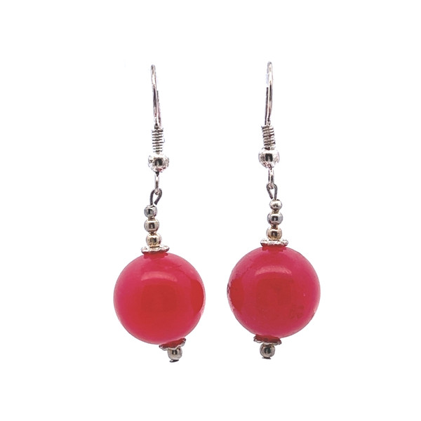 Jade Light Red Ball Plain 14mm Dangle Gemstone Earrings