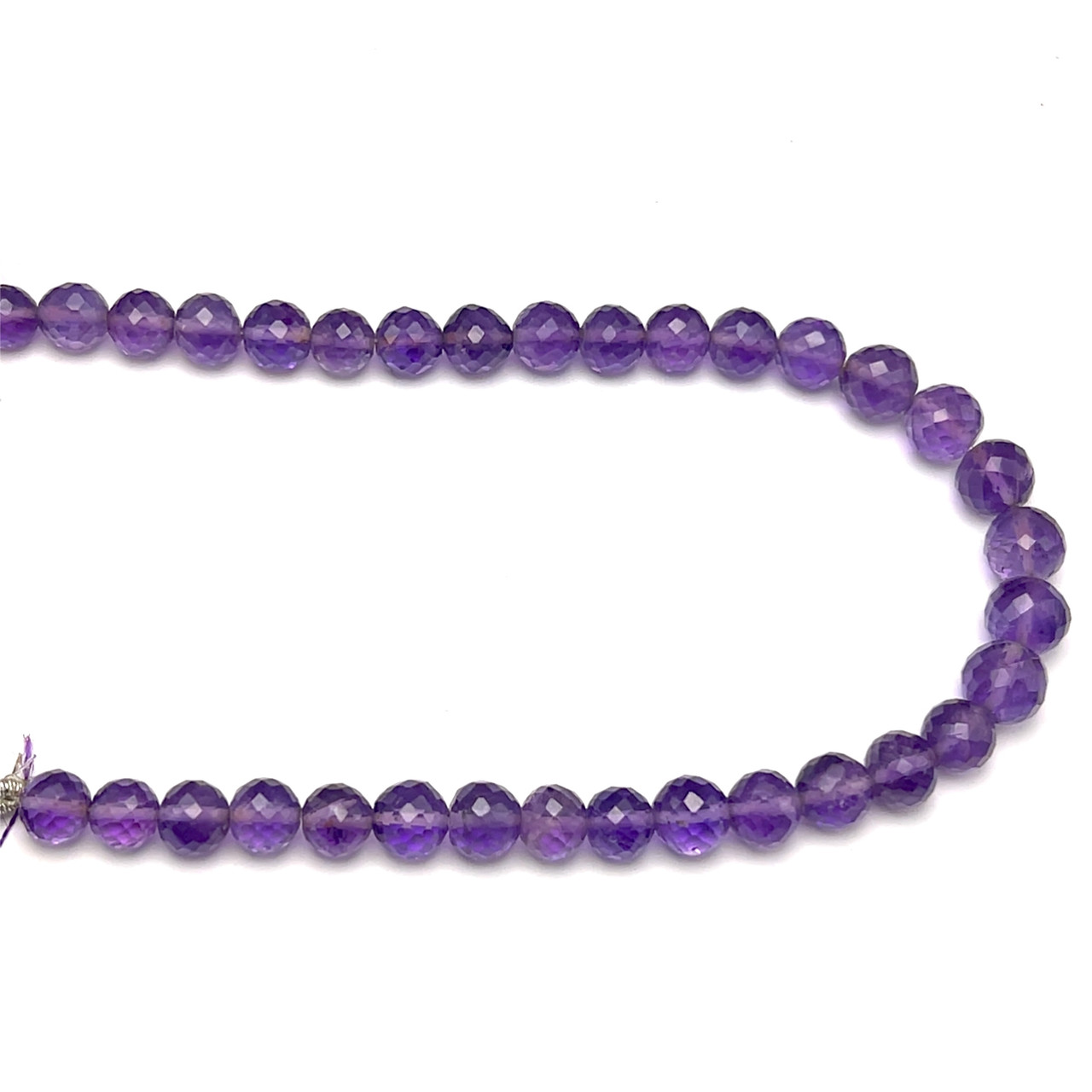 Natural African Amethyst Beads | Briolette Faceted Ball | 6.5-9mm | 32 Pcs 80 Carats | Grape Purple | VVS Clarity | 8.75 Inch Loose Strand Gemstone Jewelry Making