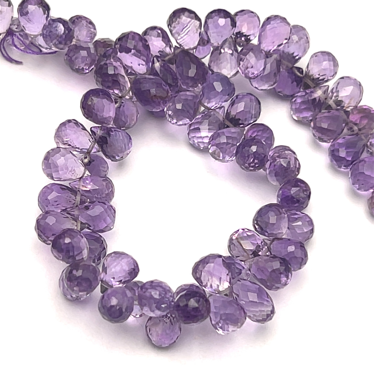 Natural African Amethyst Beads | Briolette Faceted Drop | 8x5mm | 92 Pcs 98 Carats | Heather Purple | VVS Clarity | 9 Inch Loose Strand Gemstone Jewelry Making