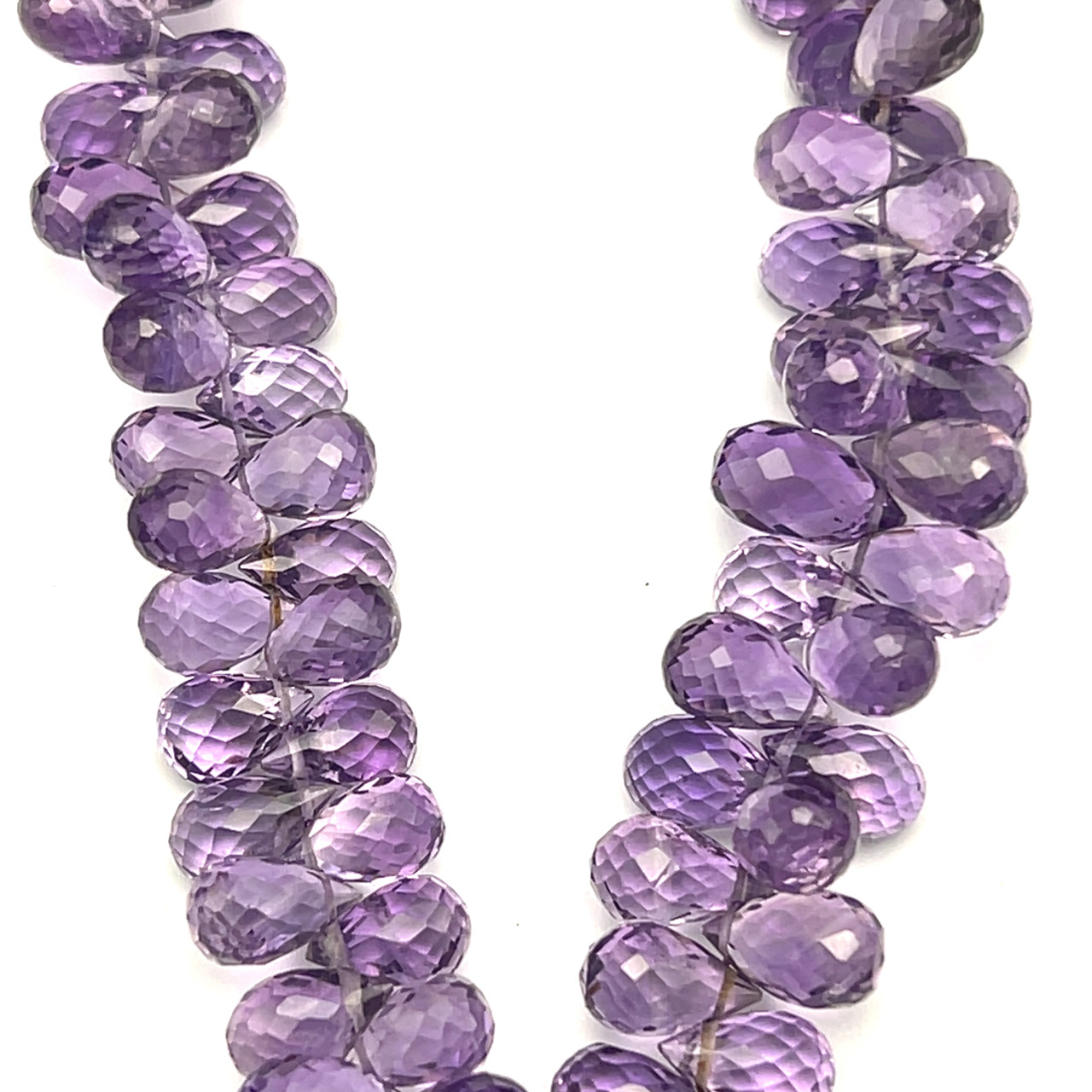Natural African Amethyst Beads | Briolette Faceted Drop | 9x6,8x5mm | 90 Pcs 118 Carats | Heather Purple | VVS Clarity | 9.1 Inch Loose Strand Gemstone Jewelry Making