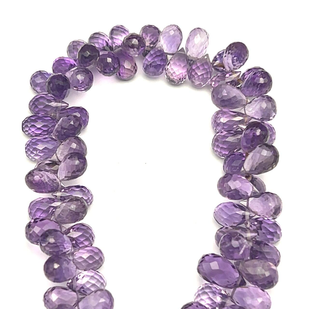Natural African Amethyst Beads | Briolette Faceted Drop | 9x6,8x5mm | 90 Pcs 118 Carats | Heather Purple | VVS Clarity | 9.1 Inch Loose Strand Gemstone Jewelry Making