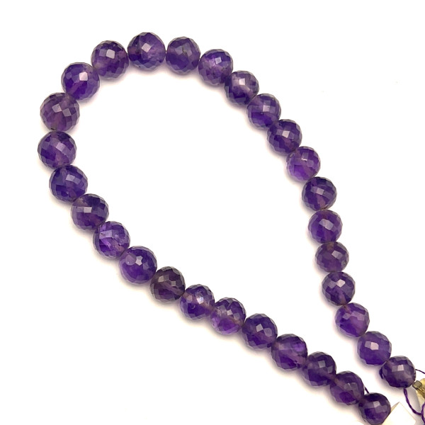 Natural African Amethyst Briolette Faceted Ball Beads | 7-8.5mm | 30 Pcs 92 Carats | Indigo Purple | VS Clarity | 8.75 Inch Loose Gemstone Strand