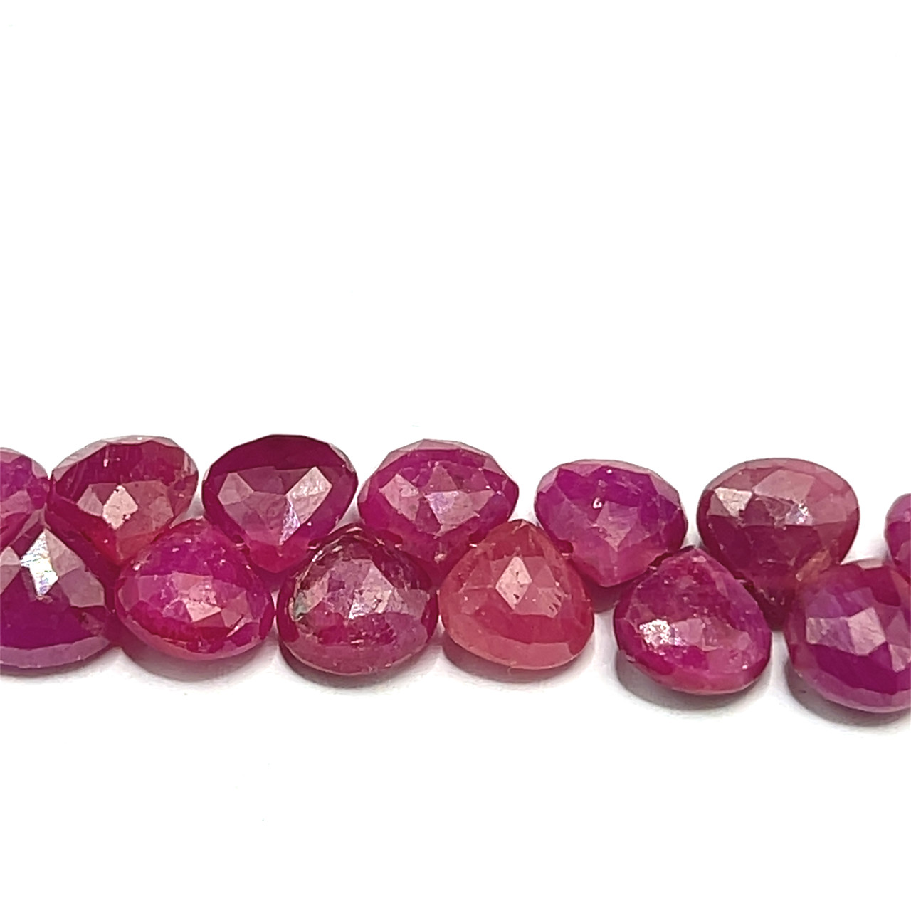 Natural African Ruby | 7mm Heart Briolette Faceted | 63 Pcs 103 Carats | Carmine Red | SI1 Clarity | 8.9 Inch Gemstone Beads for Jewelry Making