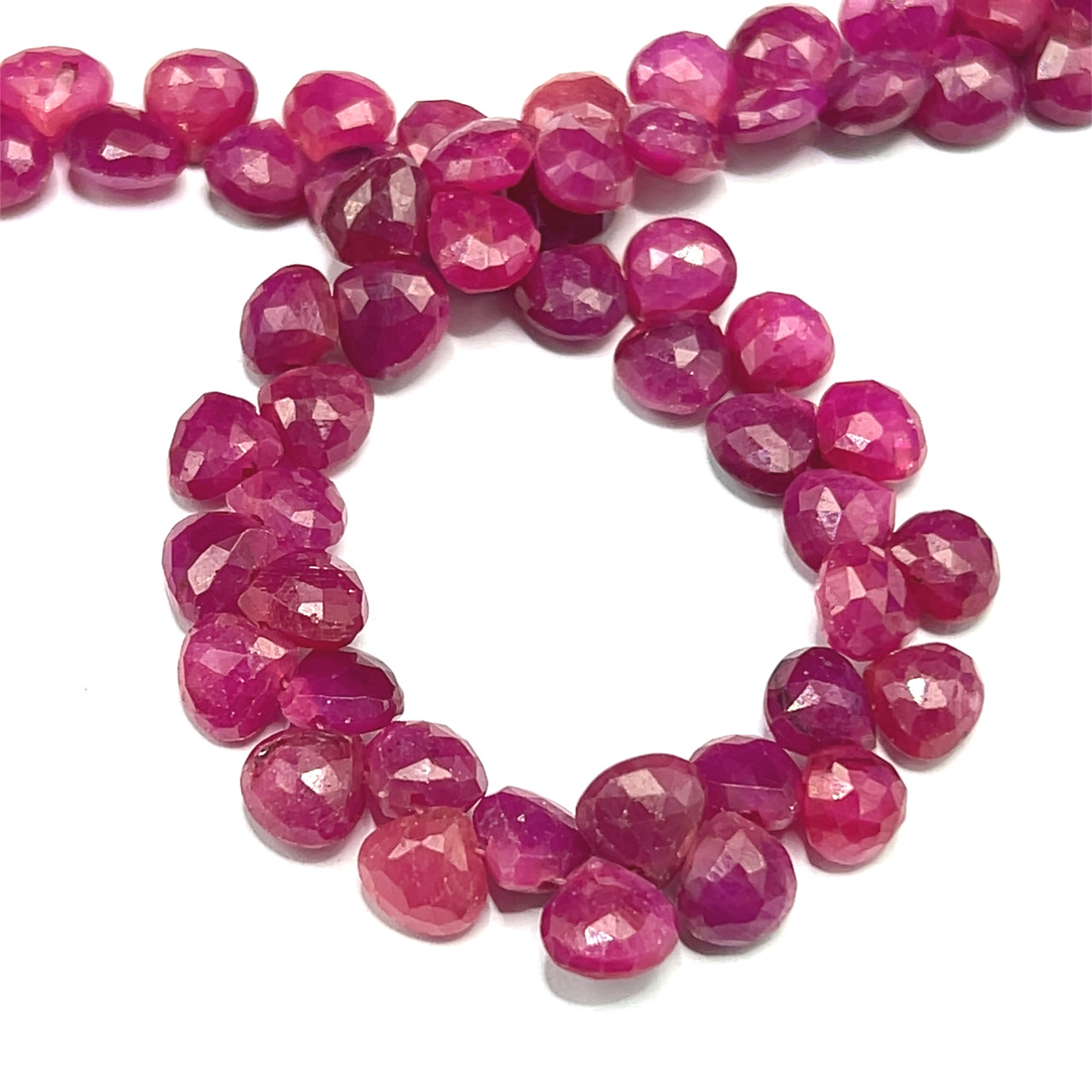 Natural African Ruby | 7mm Heart Briolette Faceted | 63 Pcs 103 Carats | Carmine Red | SI1 Clarity | 8.9 Inch Gemstone Beads for Jewelry Making