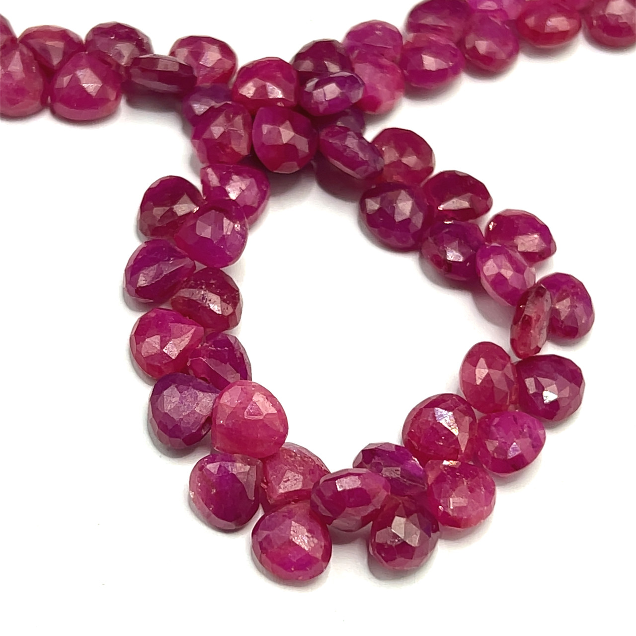 Natural African Ruby | 7mm Heart Briolette Faceted | 63 Pcs 118 Carats | Carmine Red | SI1 Clarity | 8.9 Inch Gemstone Beads for Jewelry Making