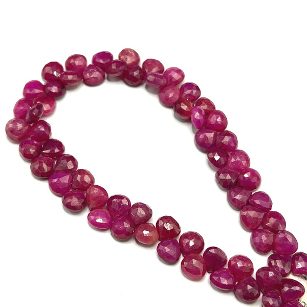 Natural African Ruby | 7mm Heart Briolette Faceted | 63 Pcs 135 Carats | Carmine Red | SI1 Clarity | 9.1 Inch Gemstone Beads for Jewelry Making