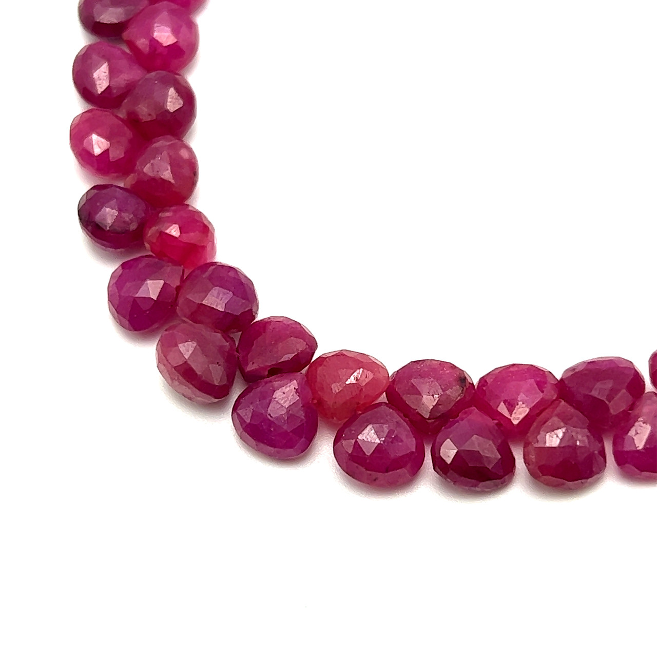 Natural African Ruby | 7mm Heart Briolette Faceted | 64 Pcs 116 Carats | Carmine Red | SI1 Clarity | 8.7 Inch Gemstone Beads for Jewelry Making