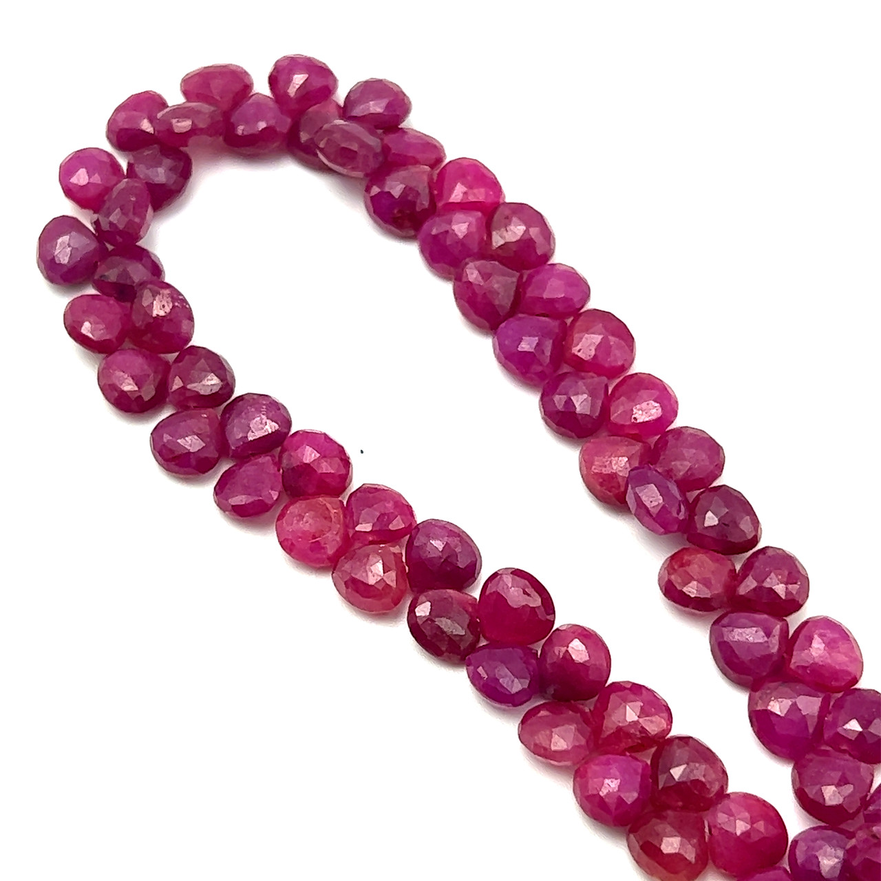 Natural African Ruby | 7mm Heart Briolette Faceted | 64 Pcs 118 Carats | Carmine Red | SI1 Clarity | 9 Inch Gemstone Beads for Jewelry Making