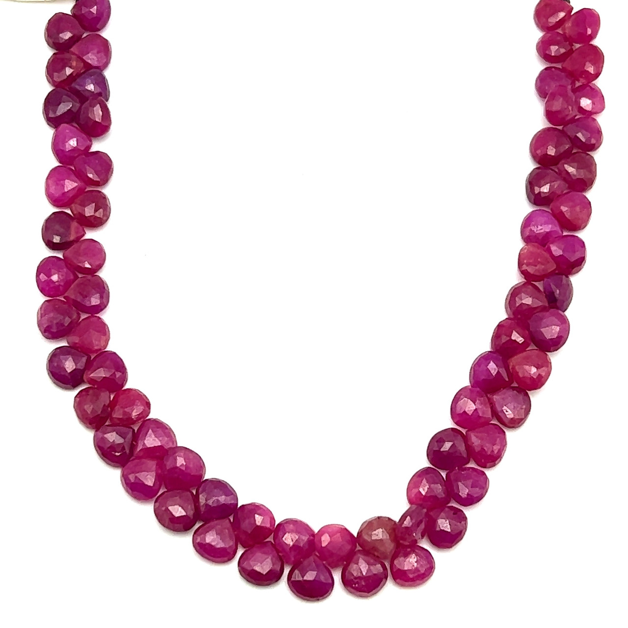 Natural African Ruby | 7mm Heart Briolette Faceted | 65 Pcs 116 Carats | Carmine Red | SI1 Clarity | 9.1 Inch Gemstone Beads for Jewelry Making