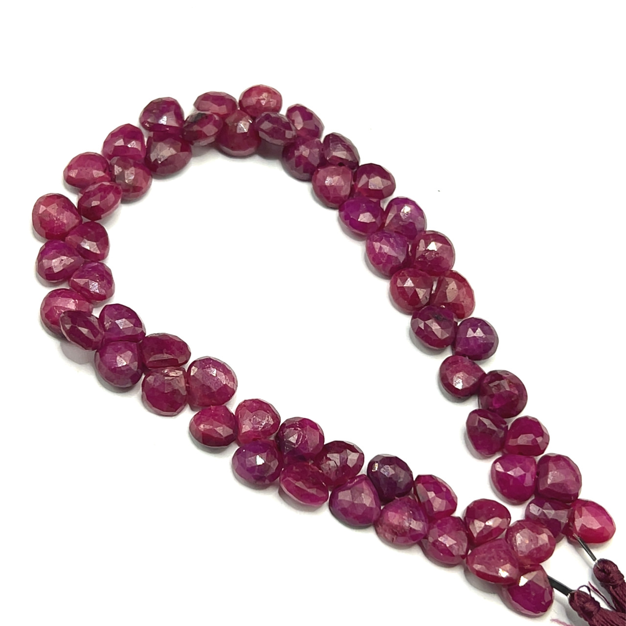 Natural African Ruby Briolette Faceted Heart Beads | 7mm | 58 Pcs 108 Carats | Rich Scarlet Red | VVS Clarity | 8.2 Inch Precious Gemstone Jewelry Making