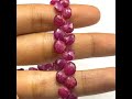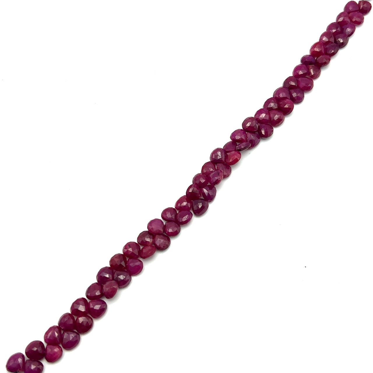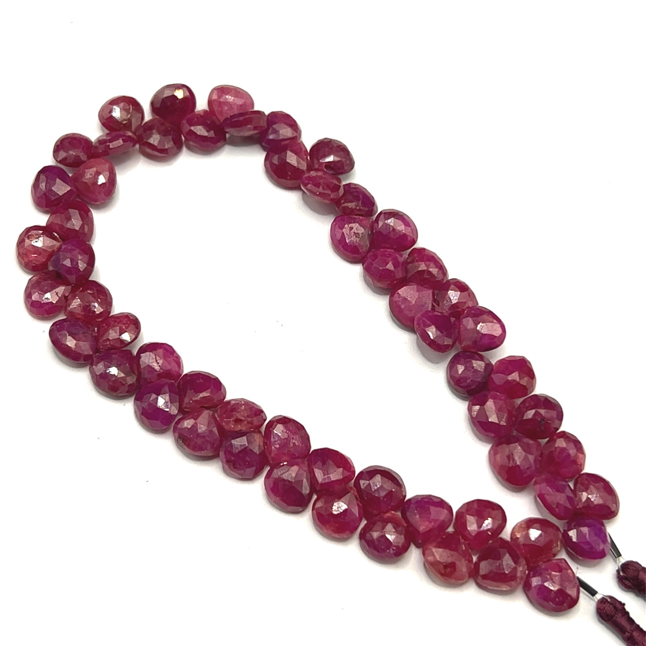Natural African Ruby Briolette Faceted Heart Beads | 7mm | 58 Pcs 108 Carats | Rich Scarlet Red | VVS Clarity | 8.4 Inch Precious July Birthstone Gemstone Jewelry Making