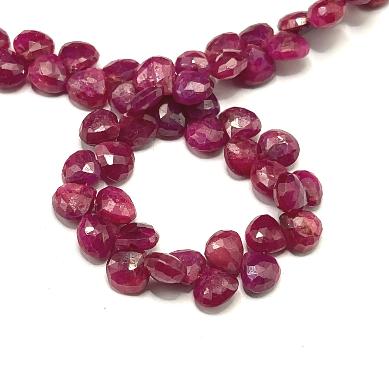 Natural African Ruby Briolette Faceted Heart Beads | 7mm | 58 Pcs 108 Carats | Rich Scarlet Red | VVS Clarity | 8.4 Inch Precious July Birthstone Gemstone Jewelry Making