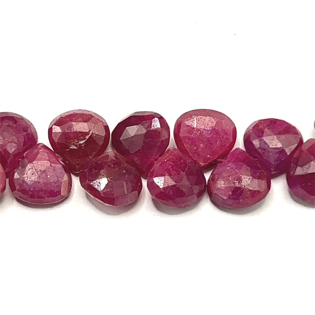 Natural African Ruby Briolette Faceted Heart Beads | 7mm | 58 Pcs 108 Carats | Rich Scarlet Red | VVS Clarity | 8.4 Inch Precious July Birthstone Gemstone Jewelry Making